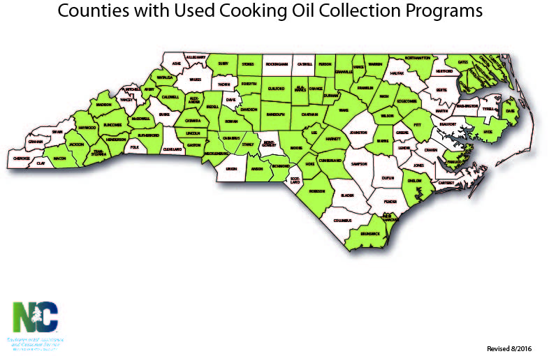 Home kitchens can reduce FOG discharges to prevent clogged pipes and costly cleaning of the lines. Collecting UCO is easy and it's recyclable too. Many North Carolina communities have FOG programs and are successfully collecting used cooking oil. Find information and contacts for your Local Solid Waste and Recycling Program.