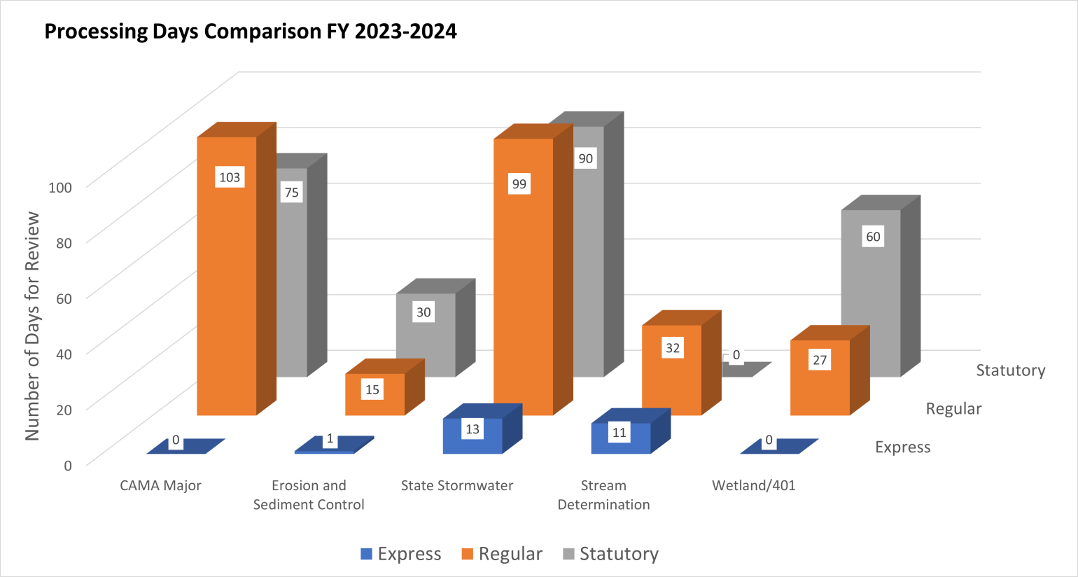 The Express Permitting Program offers a more timely review process for a number of environmental permits required for development. This program offers quicker permit decisions and certifications as well as consultation to identify necessary environmental requirements. Higher fees are charged to support additional staff for the express review. A pre-application meeting is required and a well-documented application with supporting technical information is necessary for a thorough and swift review. Multiple permits that may be required for a project may be reviewed concurrently.